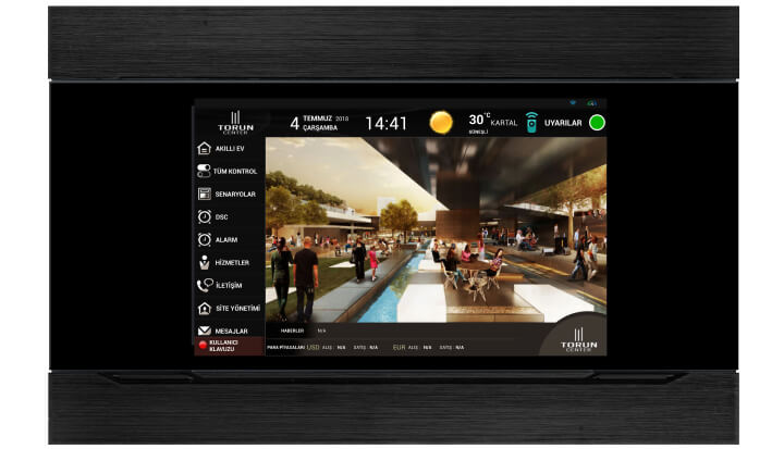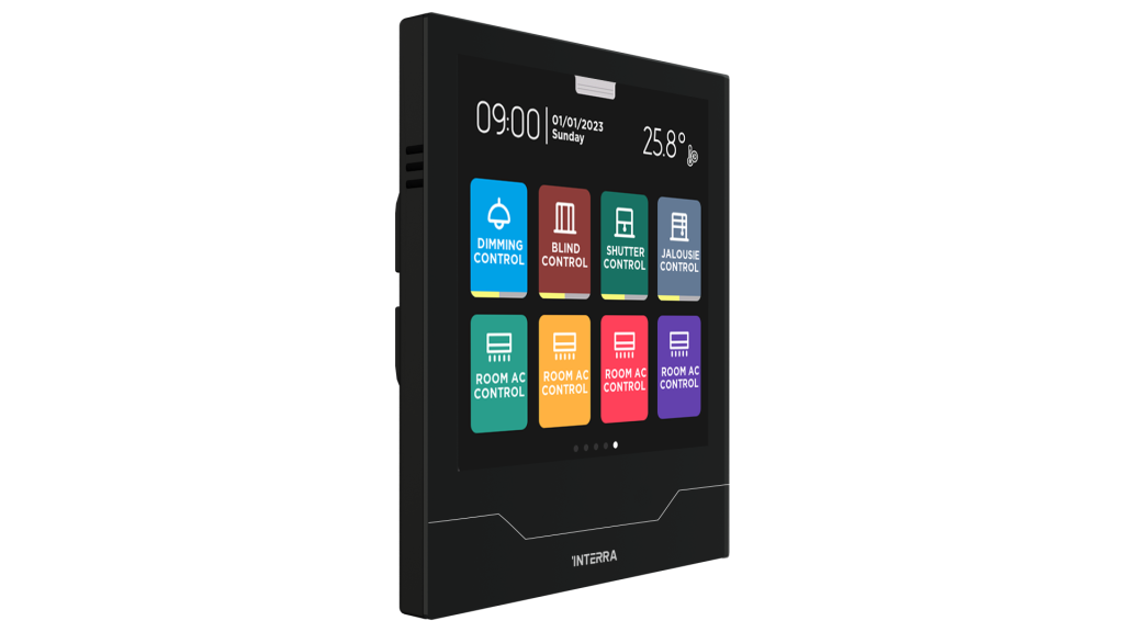 Modern bir tasarım, donanım, yazılım ve tüm proje gereksinimlerine yanıt verebilecek uygun bir arayüze sahip bir Interra 4 Dokunmatik Panel, herhangi bir alan üzerinde kullanılmak üzere tasarlanmıştır.