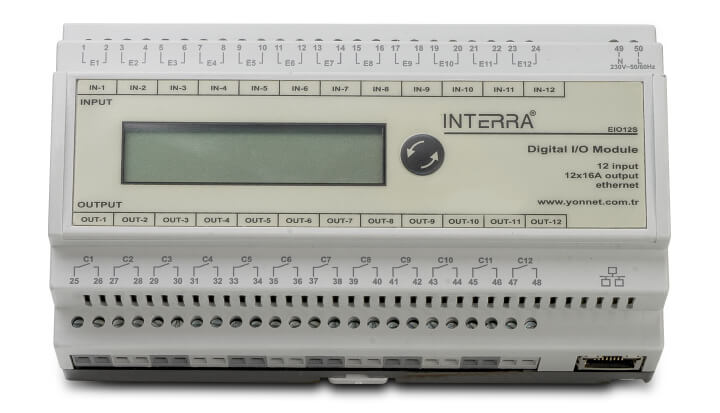 Interra teknolojileri ile yaşam alanlarının kontrolü mükemmel bir şekilde gerçekleştirilirken, aynı zamanda maliyet-etkin çözümler sunulmaktadır. EIO yapılandırıcısı ile kolay programlanır ve ağ üzerinden çalışır, Imini ile uyumludur. İzole ve bağımsız rölelere sahiptir.