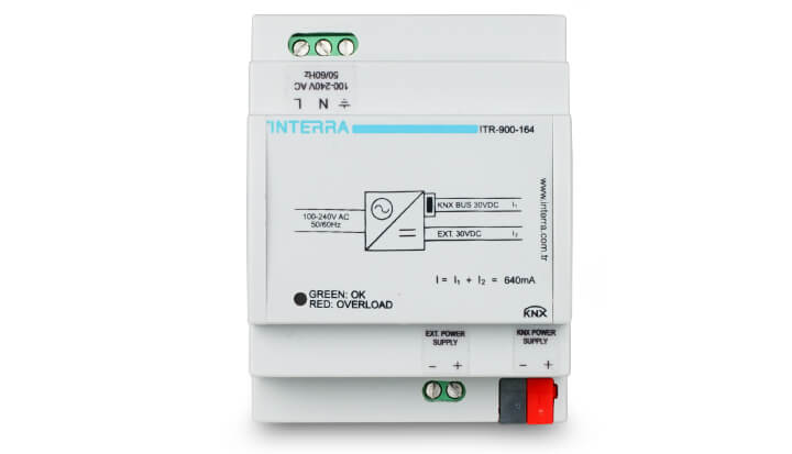 KNX güç kaynakları, KNX sistem için gerilim ürertir. (SELF) KNX hattı, güç kaynağından izoleli bir bobin sayesinde ayrılır. Gerilim çıkışı kısa devre ve aşırı yüke karşı korumalıdır. İki renkli LED ile cihaz çıkış durumunu gösterir.